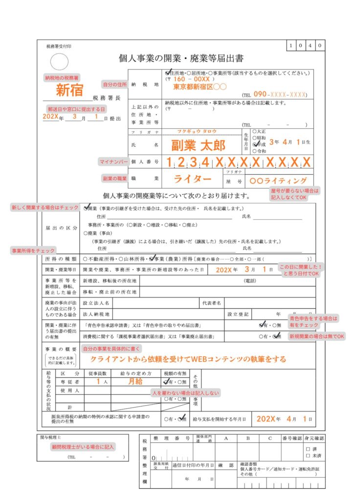 - 開業届に必要事項を書く